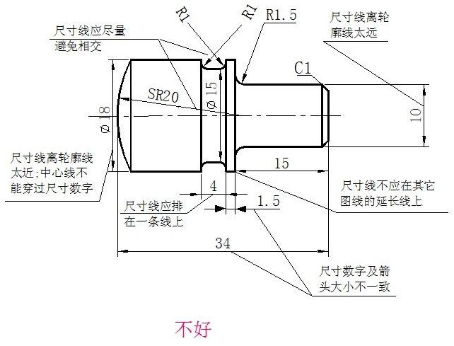 尺寸数字一般应写在尺寸线的上方,当尺寸线为垂直方向时,应注写在尺寸线的左方,也允许注写在尺寸线的中断处。狭小部位的尺寸数字注写方法。
