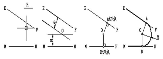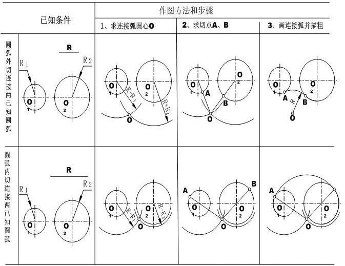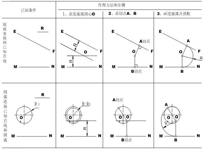 3、用已知半径为R的园弧连接作图举例(如下图表)