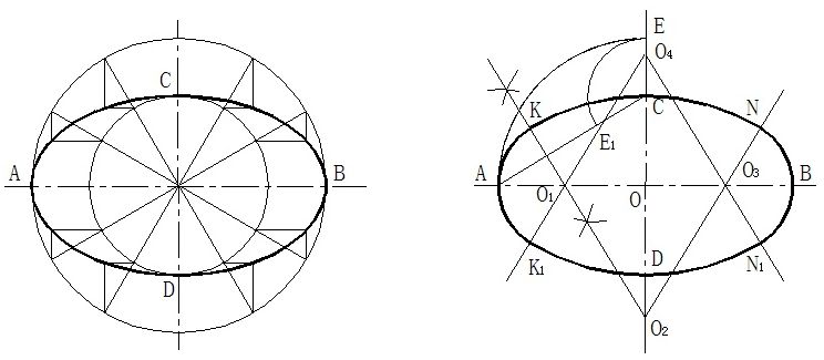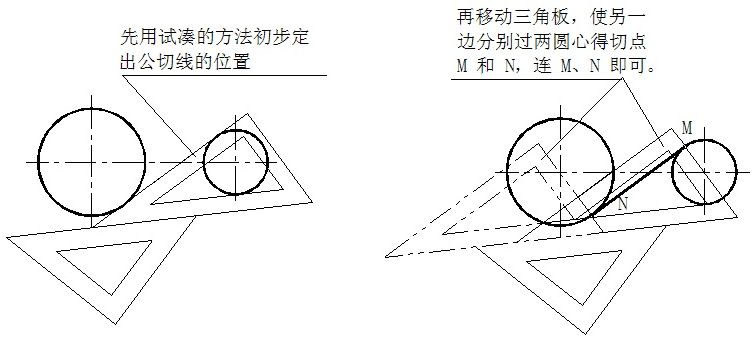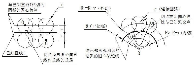 2、圆弧间的圆弧连接的两种形式 :外连接、 内连接