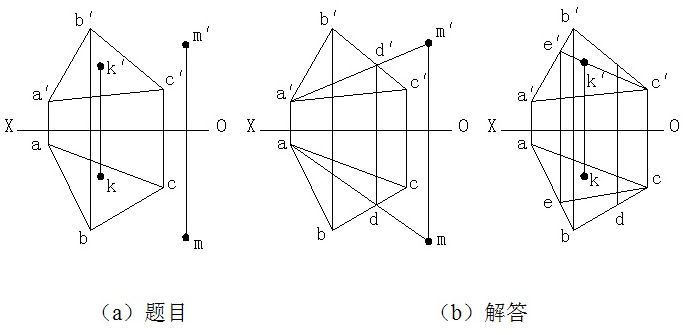 例2-10 如图,试判断点K和点M是否属于△ABC所确定的平面。