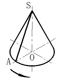 圆锥表面由圆锥面和底面所围成。如图3-5(a)所示,圆锥面可看作是一条直母线SA围绕与它平行的轴线SO回转而成。在圆锥面上通过锥顶的任一直线称为圆锥面的素线。
