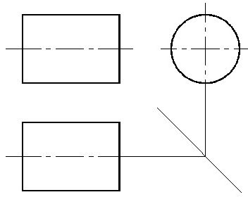 作图方法与步骤如图3-4(b)所示: (1)作侧面投影的中心线和轴线的正面投影和水平投影(细点划线)。 (2)作侧面投影的圆形。 (3)根据圆柱的高度,按投影规律,作出正面投影和水平投影。 从图3-4(b)可以看出圆柱的投影特征:当圆柱的轴线垂直某一个投影面时,必有一个投影为圆形,另外两个投影为全等的矩形。