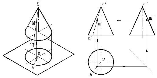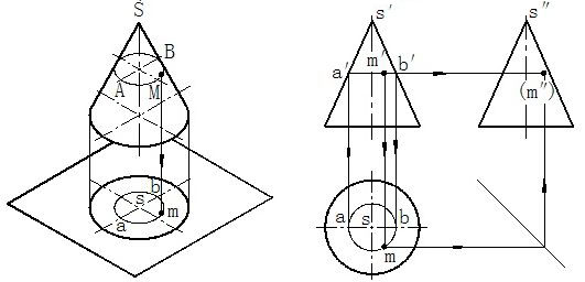 圆锥表面上点的投影