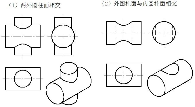 种情况。前两种情况的相贯线,可看作是平面与平面相交或平面与