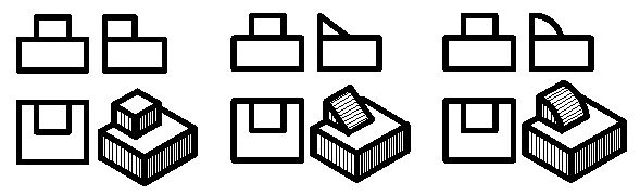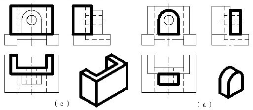 如图三组视图,他们的主、俯视图都相同,但由于左视图不同,也表示了三个不同的物体。在读图时,一般应从反映特征形状最明显的视图入手,联系其他视图进行对照分析,才能确定物体形状,切忌只看一个视图就下结论。