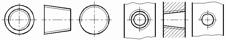 具有圆锥螺纹的零件,其螺纹部分在投影为圆的视图中,只需画出 一端螺纹视图,如图所示。