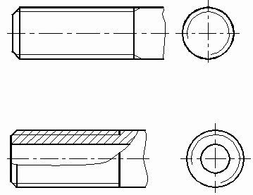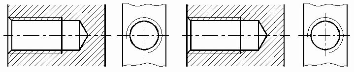 剖视图中的螺纹终止线和剖面 线画法如右图所示。 |