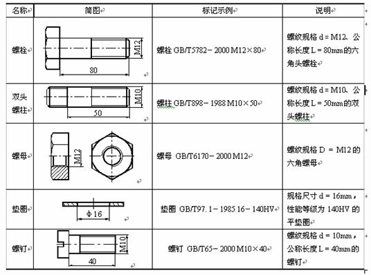 常用螺纹紧固件的种类和标记示例