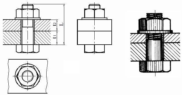 螺栓用来连接两个不太厚并能钻成通孔的零件,并与垫圈、螺母配合进行连接。