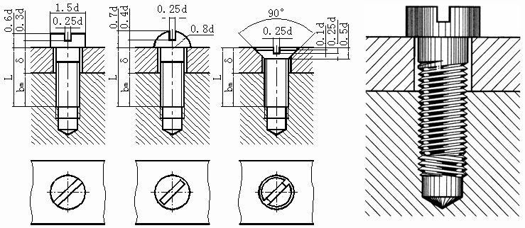 螺钉按使用性质可分为连接螺钉和紧定螺钉两种,连接螺钉的一端为螺纹,另一端为头部。紧定螺钉主要用于防止两相配零件之间发生相对运动的场合。