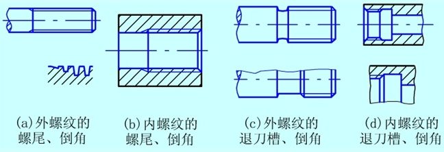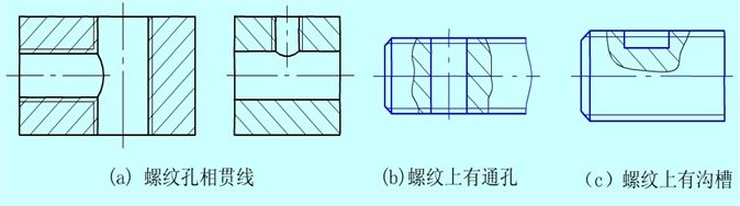 螺纹表面上的某些结构 螺纹表面上的相贯线或其它结构不影响螺纹的表达。